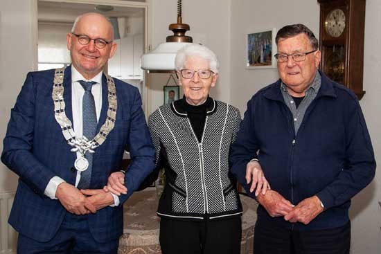 HENDRIK-IDO-AMBACHT - Het echtpaar De Jong-Staat is op 9 maart 2020 vijfenzestig jaar getrouwd. Burgemeester Jan Heijkoop heeft hen op deze dag gefeliciteerd met hun briljanten huwelijk.