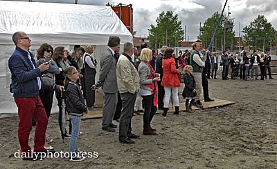 HENDRIK IDO AMBACHT / ZWIJNDRECHT - Op maandag 24 juni verrichtte wethouder Teunis Stoop (Hendrik-Ido-Ambacht), samen met wethouder Aaike Kamsteeg (Zwijndrecht) de officiële handeling voor de start van 23 woningen aan de Laan van Welhorst in de wijk Volgerlanden. De woningen staan nog net op Ambachts grondgebied, op de grens met Zwijndrecht.