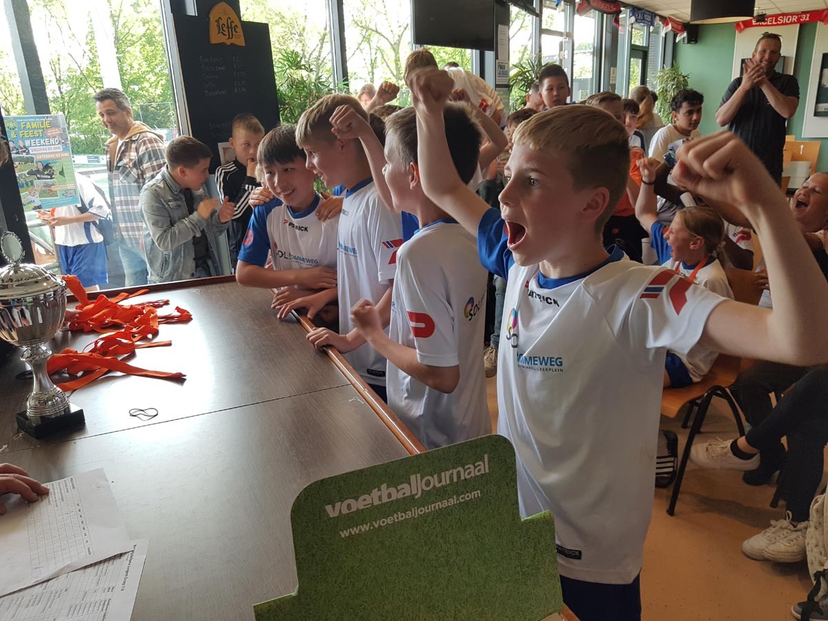 Bij de meiden was het verschil wel duidelijk. In een poule van zeven moesten er maar liefst zes wedstrijden van een kwartier worden gespeeld. Het was eigenlijk alleen de kampioen van Zwijndrecht, De Impuls, die het onze meiden moeilijk maakte. Maar ook deze spannende wedstrijd werd gewonnen. Met zes overwinningen hebben de meiden zich geplaatst voor de districtfinale, die op 31 mei in Eindhoven wordt gespeeld. Dit team, onder leiding van juf Daisy en moeder Andrea, gaat in Eindhoven zeker weer voor de winst. Daar is een ticket voor de landelijke finale te verdienen.
